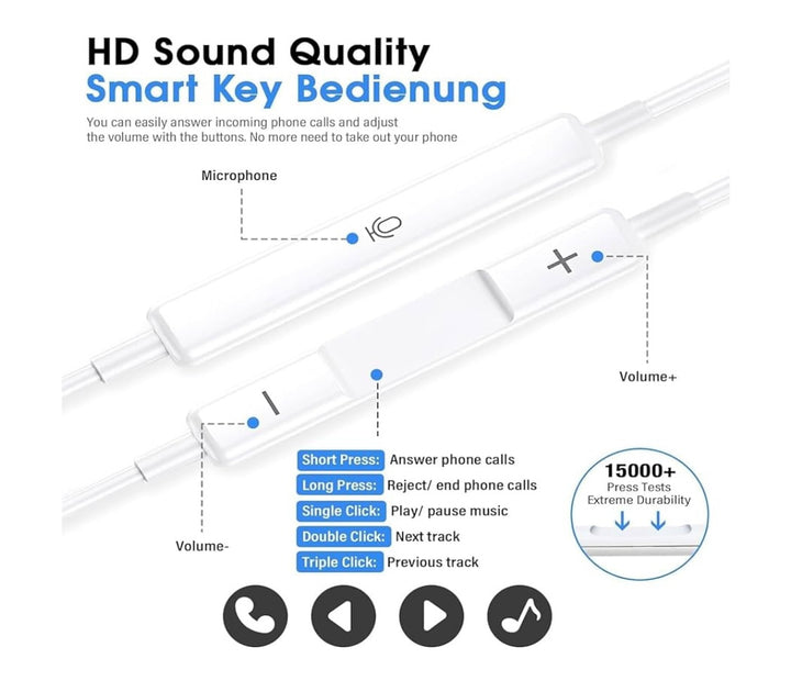 - 【Commande multifonctionnelle】à l'aide des boutons de la télécommande, vous pouvez lire/mettre en pause des chansons et sauter la chanson suivante/précédente sans avoir à décrocher votre téléphone. Vous avez un accès facile au contrôle du volume à tout moment et en tout lieu. Les écouteurs de type C dotés d'un microphone de haute qualité permettent des appels mains libres, vous permettant de répondre et de raccrocher facilement. Partagez votre bonheur avec vos amis à tout moment.