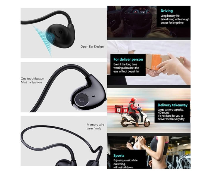 - Design à oreilles ouvertes et technologie de conduction d'air : les écouteurs ouverts adoptent la dernière technologie ouverte sans fil. Pas besoin de mettre des écouteurs dans vos oreilles, ce qui réduit la douleur ou les dommages auditifs. Nos écouteurs à conduction d'air sont livrés en combinant des écouteurs traditionnels à conduction osseuse avec une technologie améliorée. Utilisez l'air comme moyen pour transmettre des ondes sonores, ce qui peut réduire les chocs à l'oreille et vous offrir une expérience de port confortable.