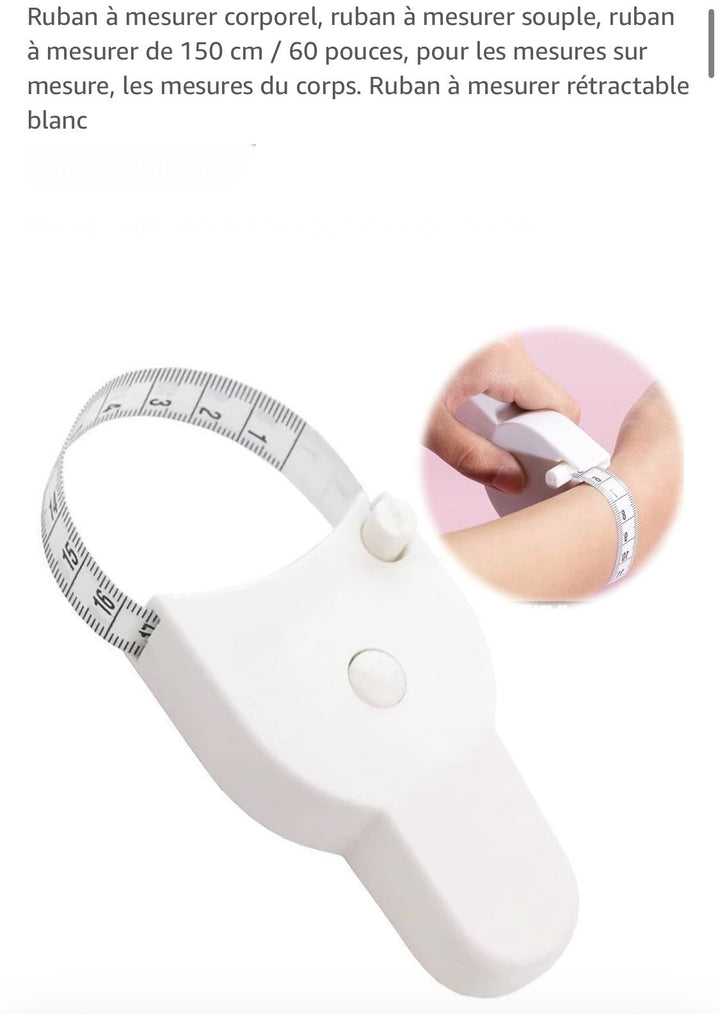 - [Contenu de l'emballage] 1 mètre ruban blanc de 150 cm. Lorsque vous utilisez un mètre ruban, vos doigts doivent presser la partie du mètre ruban, pas la partie à pression de la tête du mètre ruban. Si vous tirez sur la partie à pression, le mètre ruban peut être facilement endommagé pendant l'utilisation. La partie à pression sert uniquement à maintenir le mètre ruban en place, vous devez donc essayer de toucher uniquement la partie à pression du mètre ruban lorsque vous tirez.