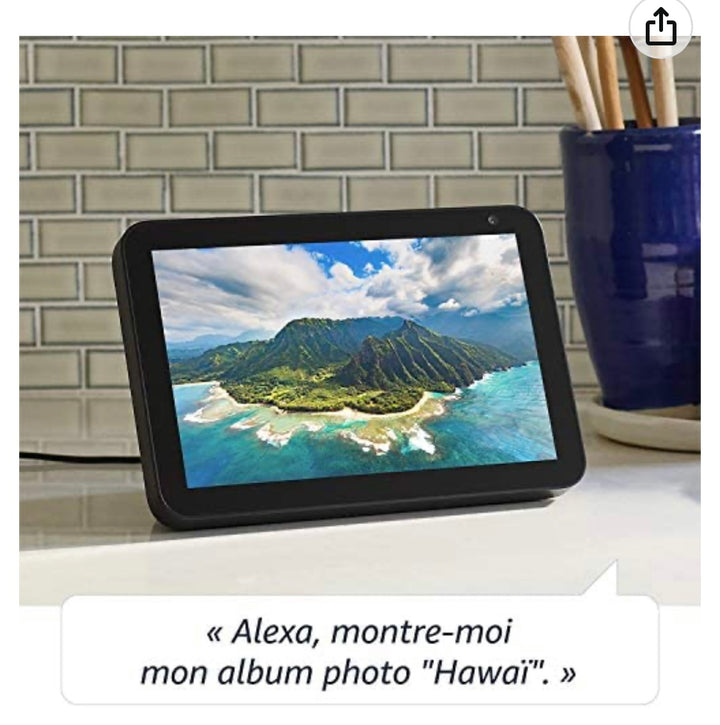 • Alexa peut vous en montrer plus : grâce à un écran HD de 8" et un son stéréo, Alexa peut vous aider à gérer votre journée en un coup d'œil.