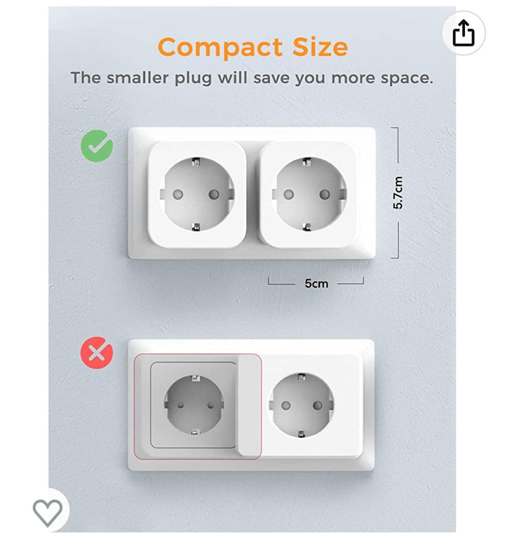 • Taille ultra mini】Nous avons réduit la taille des prises wifi à 5x5.7x6.3cm (taille pour 1pc), tandis que le design compact vous permet de garder votre deuxième prise de courant libre. La mini prise vous permet non seulement de gagner de la place, mais aussi de la transporter facilement en voyage.