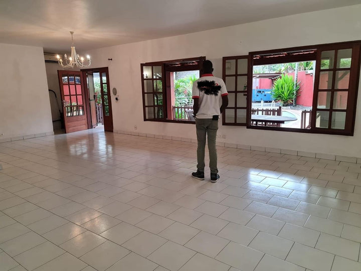 Libreville au Quartier Louis, (proche statue Raponda Walker) disponible à la vente (390 millions) avec TF, mais possibilité de location (2 millions/mois) très belle villa entièrement équipée de splits :