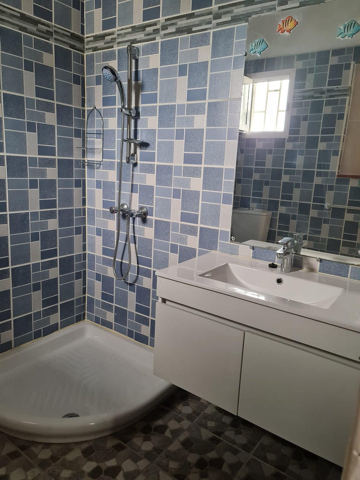 Au rez-de-chaussée 1 grand salon/salle à manger (2 splits system), 1 belle cuisine équipée (plaque de cuisson 4 feux à gaz, 1 hotte aspirante et 1 four électrique, 1 split system), 1 buanderie, 1 wc visiteurs, 1 chambre (1 split system) avec lavabo et douche