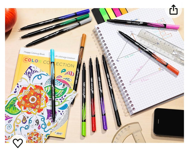 - Feutres à pointe aiguille BIC Intensity, idéaux pour une écriture fine et des dessins précis. Disponibles en 8 couleurs intenses