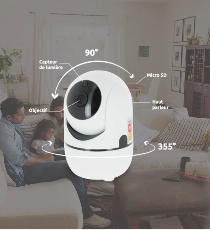 Cette caméra WiFi filme dans un format digital compressé pouvant être enregistré sur une carte Micro SD. Les images peuvent être consultées à distance à l'aide de votre smartphone. Le micro et le haut-parleur intégrés vous permettent d'écouter ce qui se passe chez vous et même de communiquer à distance ! Cette caméra étant motorisée, vous pouvez également la piloter à distance grâce à l'application.